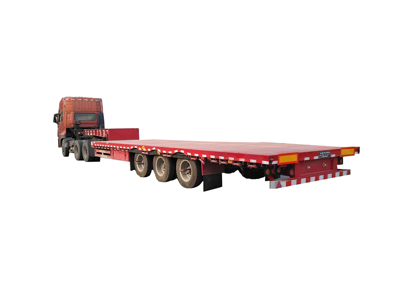 低平板式半掛車行走結構使用高強度國際鋼材質,整車自重輕,并保障其抗扭曲、抗震、抗顛簸能力、滿足不同的路面承載能力。