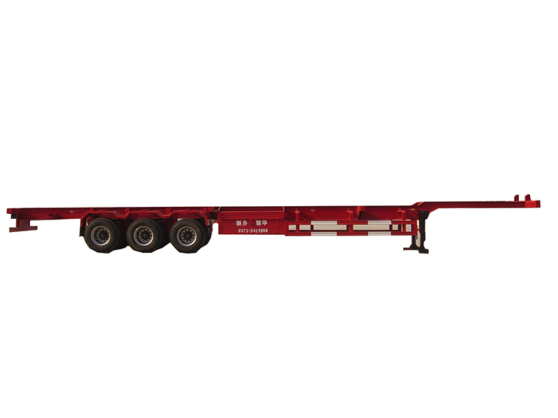 集裝箱半掛車是載運集裝箱的專用運輸掛車。集裝箱運輸發展初期,因集裝箱載重量較小,數量不大,多用普通載貨汽車載運。20世紀60年代以來,隨著集裝箱運輸的迅速發展,各國相繼研制成專門運輸集裝箱的汽車。集裝箱掛車裝載部位的尺寸按標準集裝箱尺寸確定,并在相應于集裝箱底部四角的位置上設有固定集裝箱的扭鎖裝置。載運集裝箱的專用運輸掛車。在裝載部位的四角設有固定集裝箱的扭鎖裝置。通常采用半掛式、全掛式和雙掛式,以半掛式為多。半掛式又有平板式和骨架式之分,前者有平板貨臺,也可用來裝運普通長大貨物;后者無貨臺,集裝箱裝到底盤骨架上,由扭鎖裝置固定成為半掛車的強度構件。